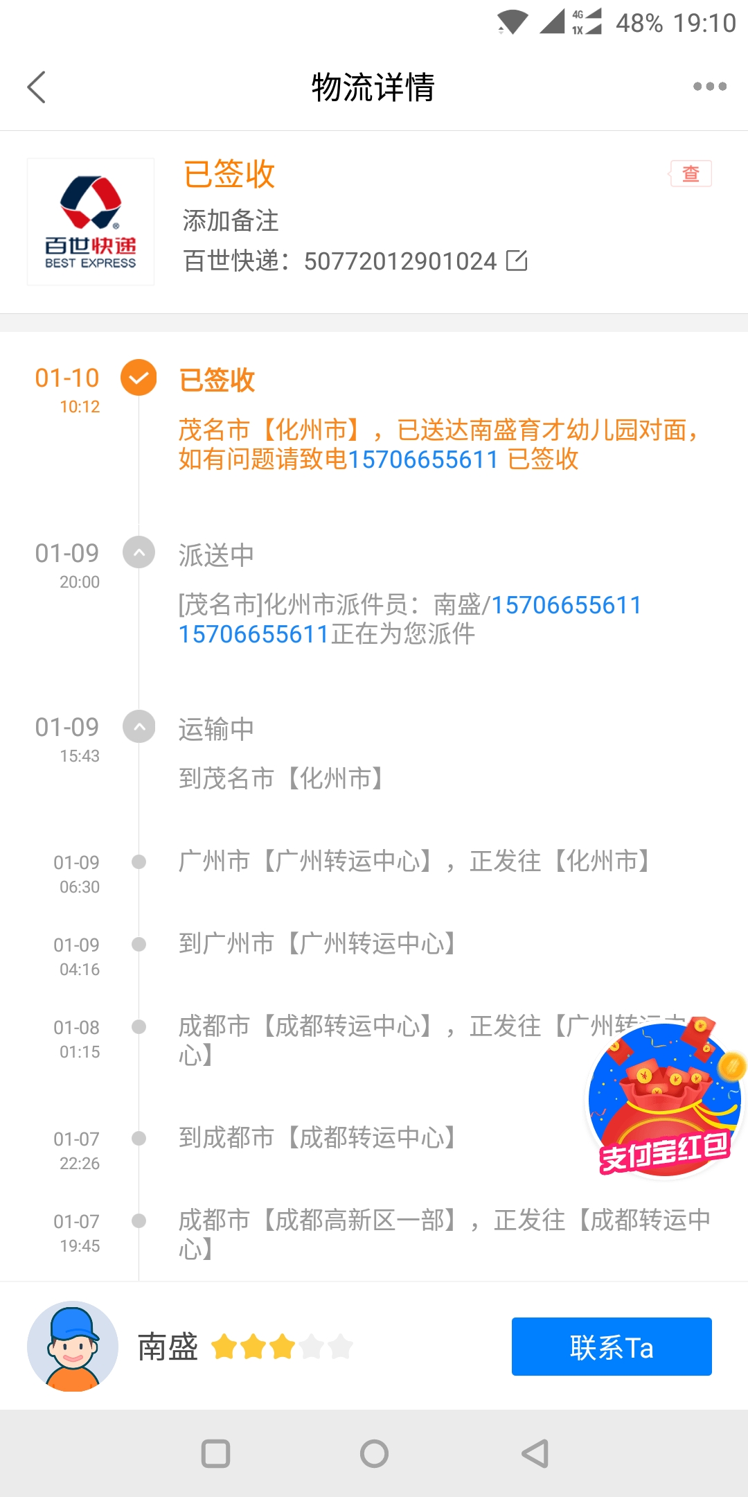 六天還沒送到,垃圾百世快遞公司,下次不會(huì)用了